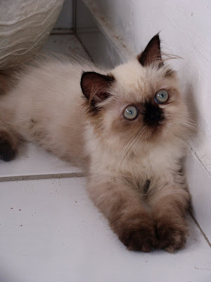 Essa gostosa é uma filhotinha de três meses da raça Himalaio, que é uma mistura entre persas e siameses.